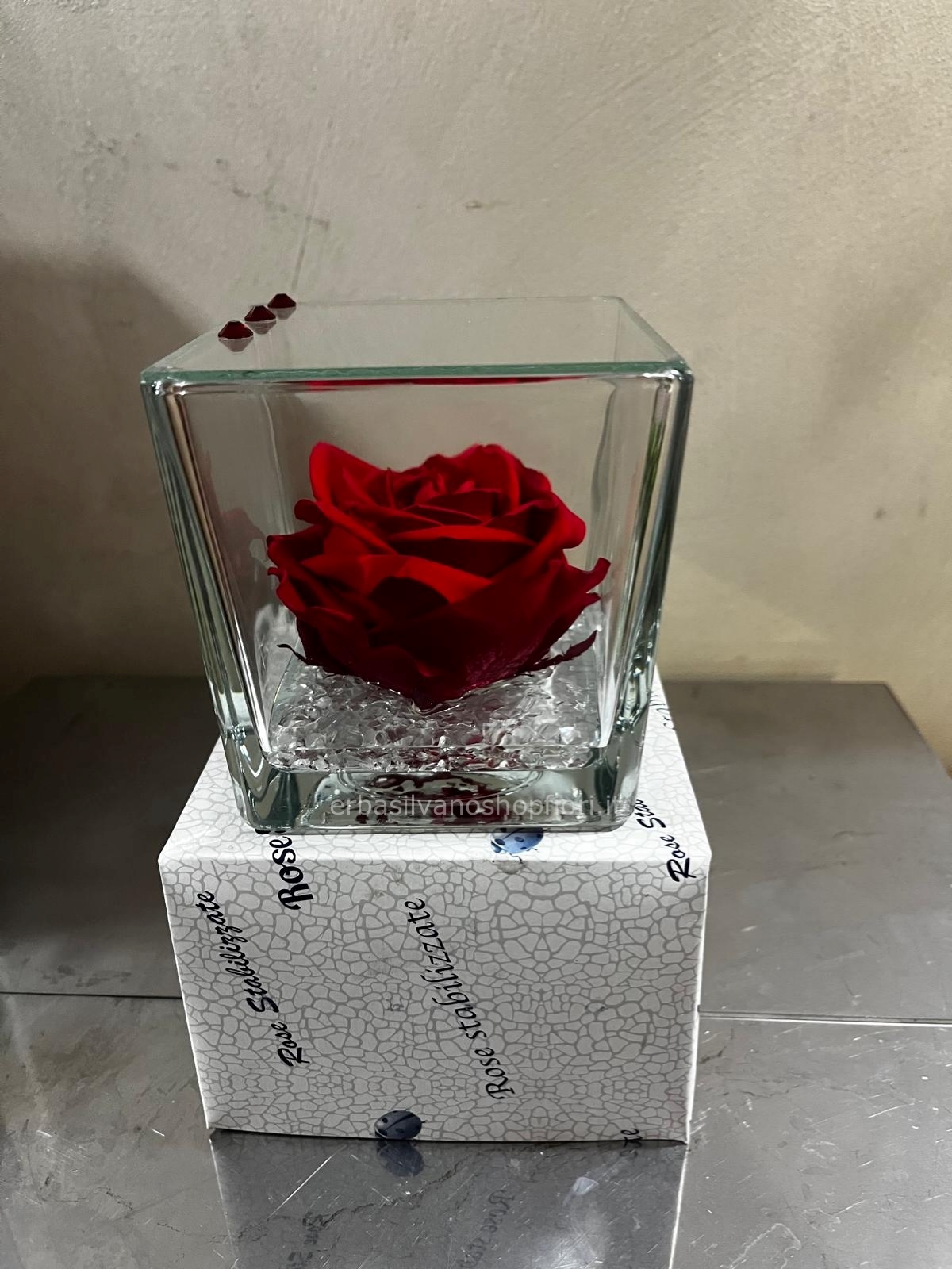Rosa eterna grande in cubo di vetro